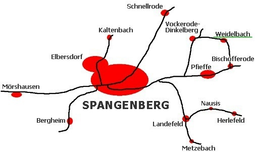 Stadtteil von Spangenberg (Schwalm-Eder-Kreis) auf 380 - 400m über NN